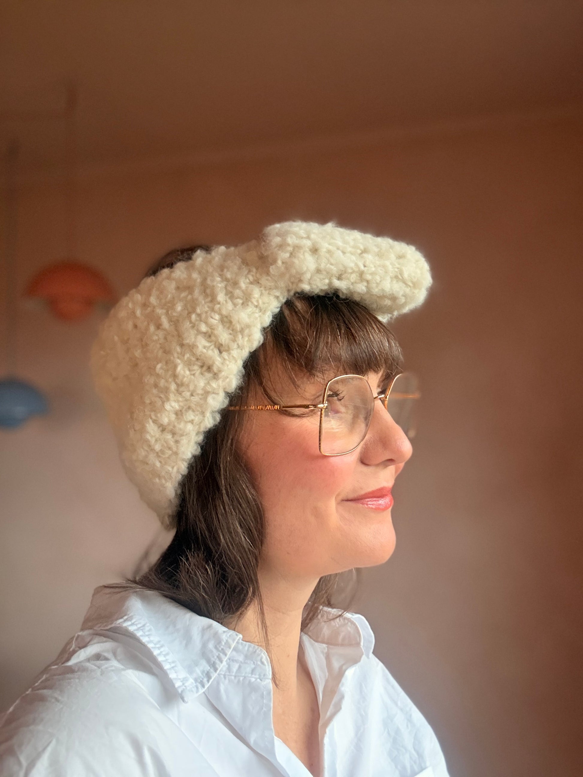 sammen underveis (for tyrkisk opplegg), eller sy den sammen til slutt (vanlig opplegg). Strikk rillestrikk med kanter. Fell i en spiss mot slutten.