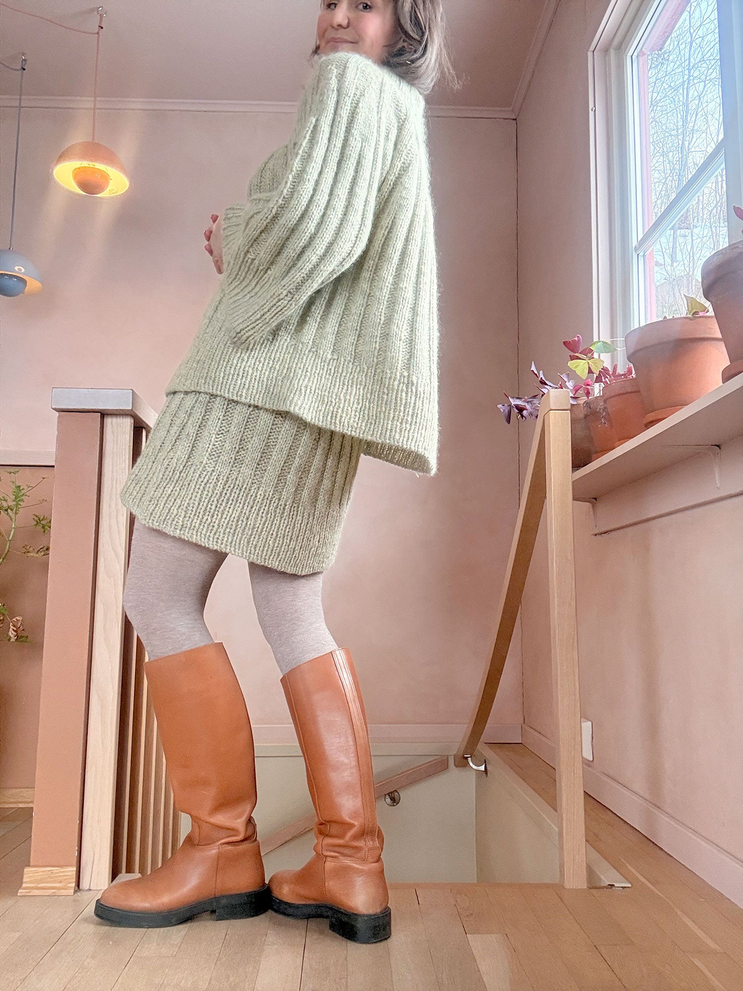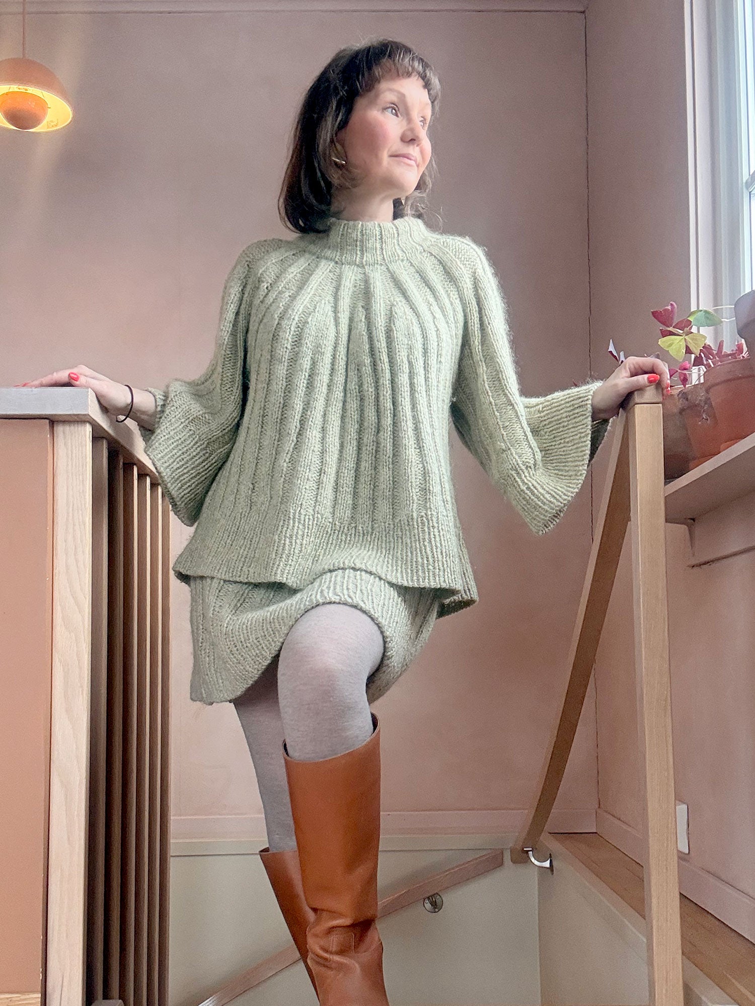Strikkes ovenfra og ned og rundøkes i diagram. Strikkes ovenfra og ned.